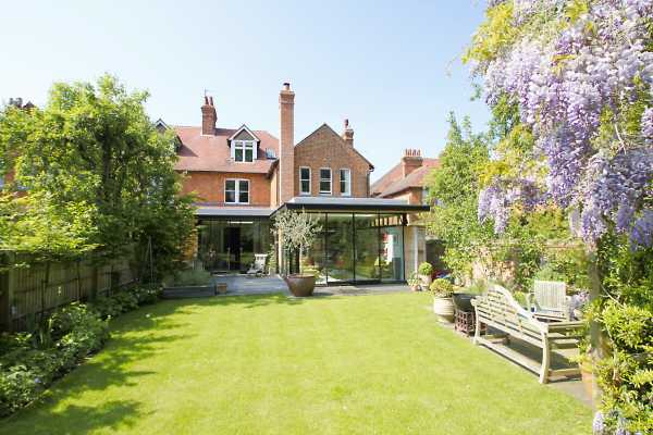 Небольшой домик, окруженный садом со всех сторон, будет великолепен для молодой семьи. Большие окна, расположенные по всей стене дома, позволяют создать ощущение свободного движения воздуха из дома наружу и внутрь.