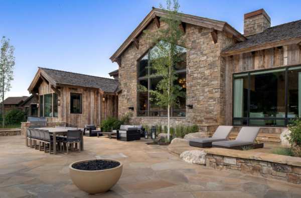 Фото дачи из камня с большой входной дверью