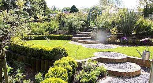 Если у вас на участке имеются перепады высот, то в таком случае вполне уместно будет обыграть их ярусами и ступенями, декорированными мозаикой или камнем.