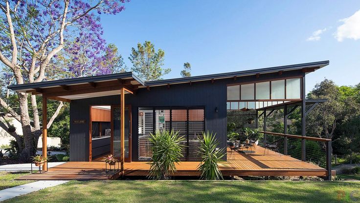 Австралийский квадратный дом с односкатной крышей