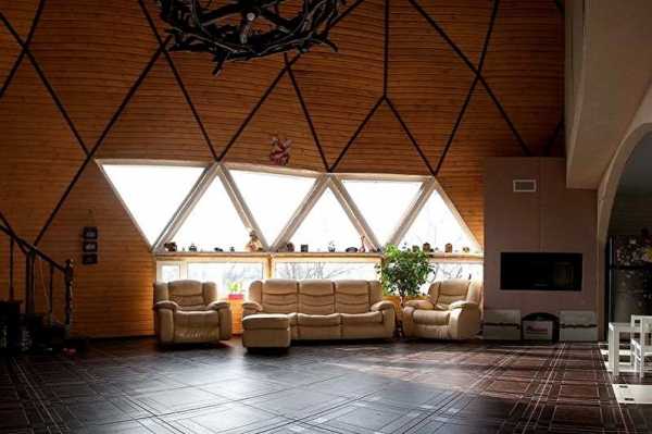 Подобные дома принято делать в виде геодезического купола. На сегодняшний день их существует несколько. По типу купола можно выделить два вида построек – это дома с куполом из четырехгранных многогранников и здания в форме икосаэдра. Последние можно назвать самым подходящим вариантом разбивки пространства на секции. Причем от того, как часто сделана разбивка, зависит прочность конструкции.