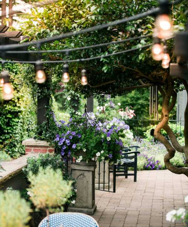 Террасы или беседки в саду позволяют разграничить зону отдыха или еды. Можно повесить небольшие светильники, чтобы озарить конструкцию в темное время суток, а также посадить у основания натужных стен вьющийся плющ или виноград, которые будут красиво обвивать террасу. Если в саду нет крытой беседки, то в летнее время года деревянная или пластиковая мебель в виде стола, лавочек или стульев послужит отличной зоной для перекуса. Установите тент, который будет защищать от солнца и непогоды, чтобы обедать или ужинать на открытом воздухе, окружая себя природой.