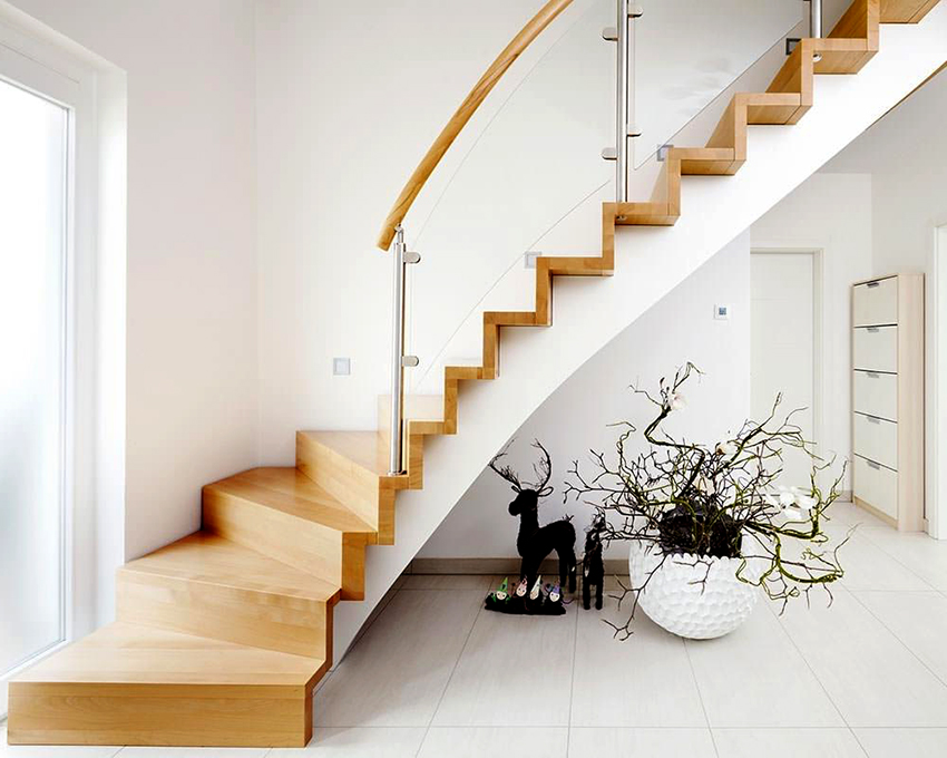 Это элемент, расположенный перпендикулярно ступеням, который закрывает пространство под ними. Преимущества закрытых лестниц: