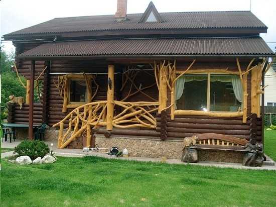 Но, не стоит забывать, что все хорошо в меру. При оформлении крыльца стволами и ветками деревьев или резными элементами главное не перестараться.