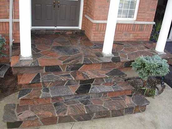 Конечно же, можно спроектировать крыльцо с комбинацией различных материалов и цвета. Но при этом необходимо правильно сочетать отделочный материал, цвет и конструкцию. Например, очень оригинально для кирпичной дачи соорудить крылечко из стандартных ступенек. А если облицевать их керамикой соответствующего цвета, то получим очень интересную конструкцию. Это очень хорошо видно на фото.
