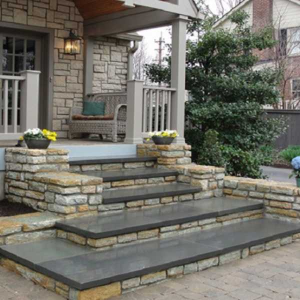 Одним из самых удачных дуэтов является комбинация из древесных и каменных включений. Использование натуральных природных компонентов позволит создать крылечко невероятно красивым.