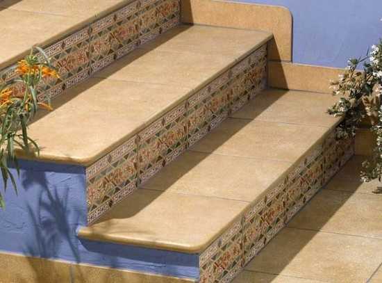 Оформить ступеньки частного дома также можно при помощи клинкерной плитки. Особенность такого декора – вставки с орнаментом. Отличным украшением крыльца может быть и мозаика. Мозаика может быть в виде цельного полотна или придется собрать ее по частям. Этот элемент украшения ступенек легко сделать и своими руками, используя для работы цветное стекло, битую керамическую плитку, ракушки, элементы посуды и др.