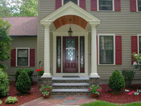 - Экстерьер частного дома – наружное оформление. Крыльцо должно сочетаться с ним по цветовой гамме, материалам и фактурам, не выбиваясь из общей концепции.