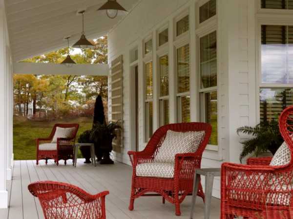 Используя все стили оформления крыльца, следует придерживаться некоторых общих требований. Например, при использовании в декоре цветов в горшках, их следует расставлять по обе стороны ступенек. Для большего уюта и дополнительной защиты от солнца, можно использовать шторы. В том случае, когда крыльцо является элементом веранды или террасы, следует использовать уютную мебель.