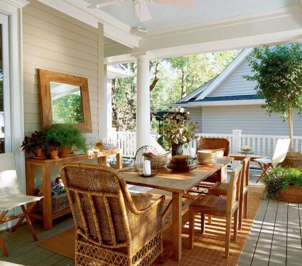 Мебель в данном случае – прекрасно подойдет плетеная. На ней Вы сможете отлично отдохнуть! Материал, в целом, достаточно устойчив к различным погодным условиям, за ним легко ухаживать, да и найти можно практически любые формы и цвета таких изделий.