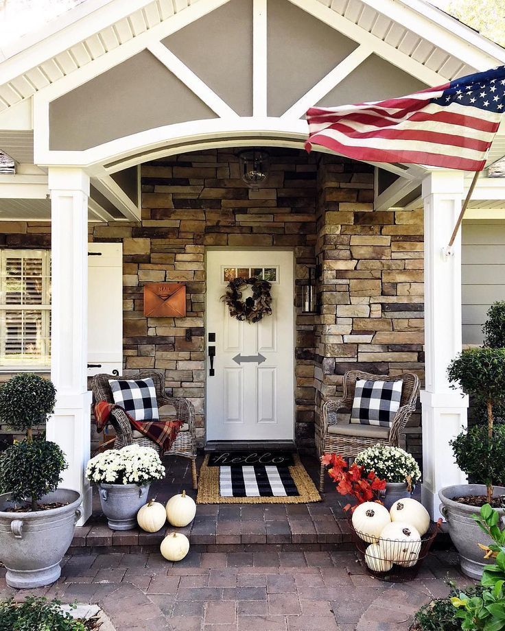 Сезонные темы для крыльца Вы также можете использовать сезонные идеи для крыльца в современном стиле. Суть в том, чтобы время от времени менять украшение в зависимости от сезона.