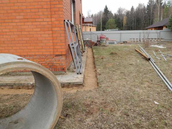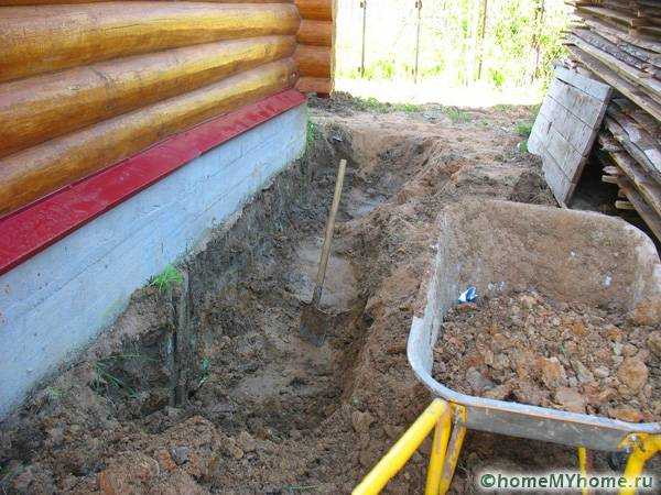 - Выкопать небольшую траншею по периметру здания.