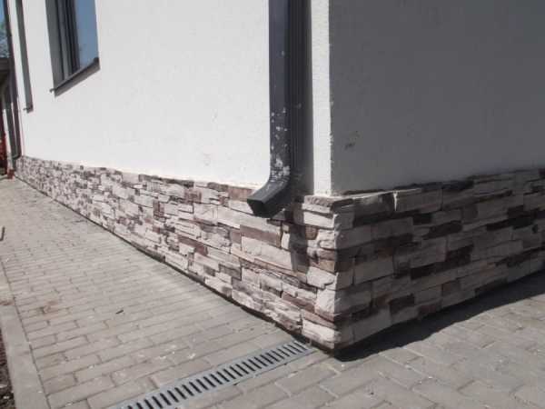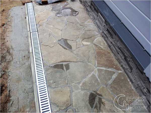 Из натурального камня (бут, сланец). Финишное покрытие — укладка натурального камня. Имеет несколько недостатков — большие щели между камнями и сложность укладки.