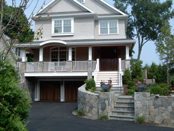Полезный совет! Если расширить цокольный этаж, то дополнительное пространство может послужить местом для обустройства веранды. Посмотрев фото 2-этажного дома с гаражом, можно убедиться, что такое дополнение придает строению определенный изысканный облик. Тем более, что такое решение позволит иметь дополнительную обустроенную площадку для отдыха.