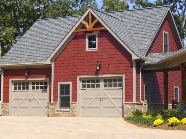 Внешняя отделка гаража должна гармонировать с декорированием фасада дома