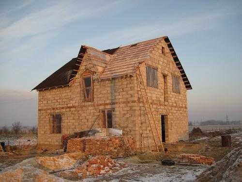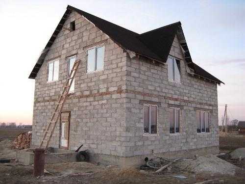 Рассмотрим пример строительства дома из пеноблоков. Именно этот материал довольно часто применяется в частном строительстве. Почему именно пеноблок? Потому что это сравнительно не дорогой материал, а благодаря своим немалым размерам процесс строительства проходит довольно быстро.