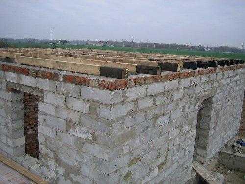 Перемычки над проемами делались по место. Для этого нужно сделать опалубку, установить арматуру диаметром 10-12 мм и залить бетон.