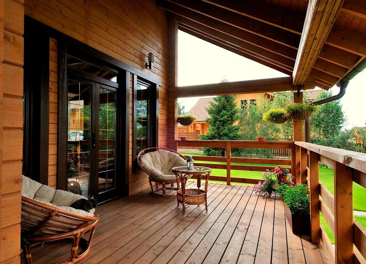 Как при строительстве террасы, так и оформлении интерьера лучше всего использовать натуральные материалы, экологичность которых не вызывает сомнения