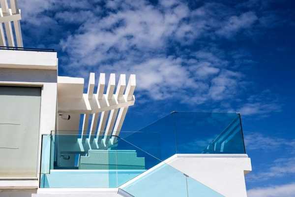 Сплошное ограждение из прозрачного калёного стекла смотрится легко и современно