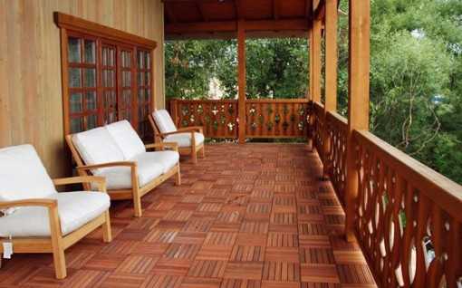 Для тех, кто любит дерево, подойдет мебель, сделанная из прочных пород дерева. Такие модели устойчивы к высокой влажности и прямым солнечным лучам, их обивка также выполняется из высокопрочных материалов. Лучше всего подойдут массивы сосны,кедра или тика. Деревянная мебель прекрасно дополнит террасу в эко – стиле или в стиле кантри.
