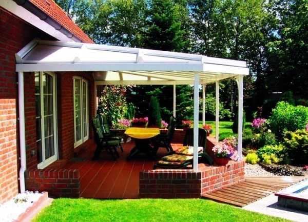 Навесы, пристроенные к дому. Фото-примеры конструкций из различных материалов и советы по монтажу своими руками в отдельной публикации нашего портала.