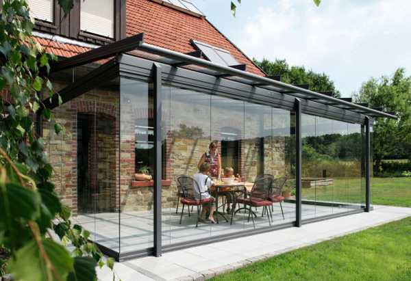 Веранда из стекла — для настоящих романтиков, обожающих природу. Такая летняя веранда к дому укроет вас от ветра и прочей непогоды, но при этом не будет скрывать шикарный вид на сад.