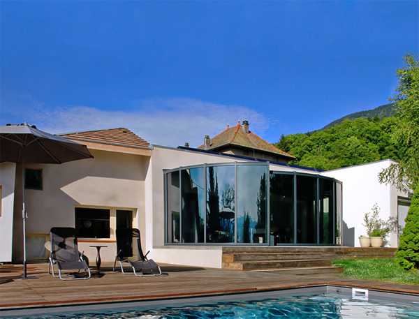 Веранда-трансформер – ещё один интересный вариант пристройки. Универсальные конструкции очень актуальны при нашей переменчивой погоде, выбирать нужно только надёжные системы у проверенных производителей, которые гарантируют качество и в остеклении применяют сверхпрочное стекло. Такой конструкции нестрашны порывы ветра или зимняя непогода. В летнее время можно открыть створки и впустить вечерние ароматы в дом, а зимой за чашечкой горячего чая в пледах наблюдать за снегопадом. Интересные проекты застеклённых веранд и террас, пристроенных к дому, представлены в нашей фотогалерее.