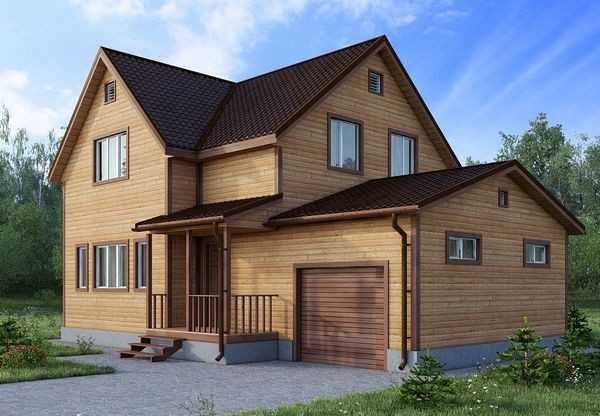 Профилированный брус или оцилиндрованное бревно обладает сравнительно небольшим удельным весом. Это обстоятельство позволяет обходиться лёгким ленточным фундаментом – технологичным и недорогим. Гаражное помещение может быть предусмотрено первоначальным проектом и построено одновременно с жилым. При необходимости, возвести бокс можно и позже, с появлением в распоряжении домовладельца автомобиля.