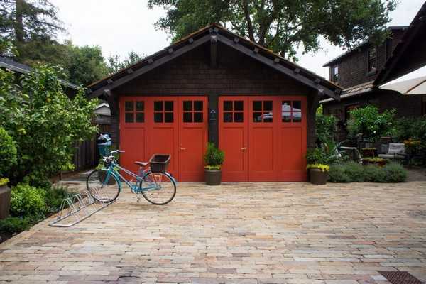 На фото показан пример дизайна гаража, выполненного в одном стиле с домом.