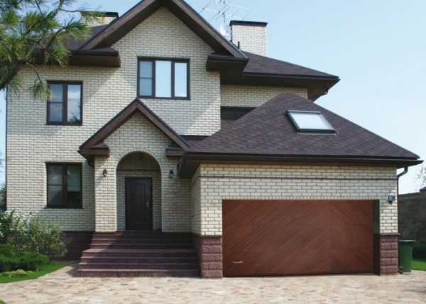 На этом фото гаражные ворота имеют некоторое сходство с окнами второго этажа и парадным входом. По крайней мере, всё подчинено общей логике оформления здания.