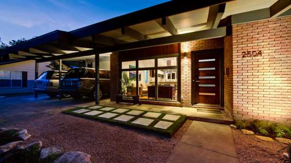 Вот ещё один пример того, какими эффектными могут быть навесы для автомобилей. Рядом едва виден вход в жилище, которое находится справа.