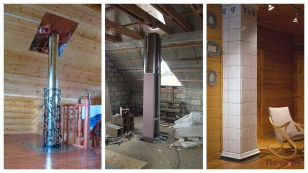 - Вторая часть трубы тоже закрыта каркасом. Выполняется он по аналогичной технологии. Место сочленения двух труб следует обработать специальным жаропрочным клеем. Вентиляционное отверстие в корпусе дымохода на чердаке выполняется внизу.