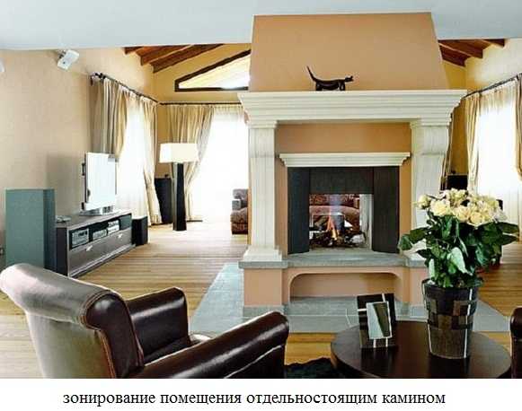 Камин в доме необходимо расположить так, чтобы перед людьми, сидящими у огня, не было коридора. В противном случае те, кто будут перемещаться по созданному проходу, начнут пересекать «зону отдыха», и нарушать спокойствие тех, кто отдыхает.