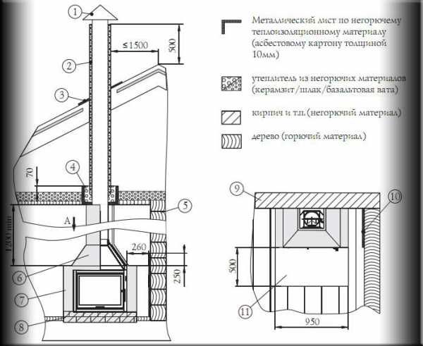 - 6 — Облицовка из негорючего материала вокруг дымохода;