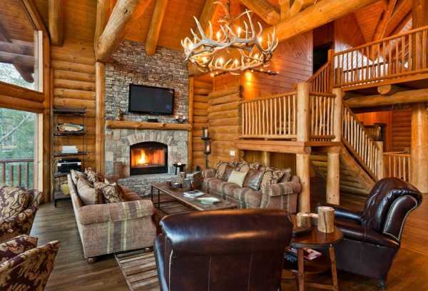 Гостиная в деревянном загородном доме