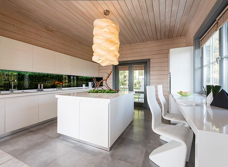 Основным отделочным материалом по-прежнему остается дерево, но обработанное и зачастую покрашенное. В этом заложен практический смысл: на севере мало солнечных дней, и из-за погодных условий окна в жилых загородных домах не очень большие. Поэтому нужно сделать пространство внутри максимально светлым и визуально легким.