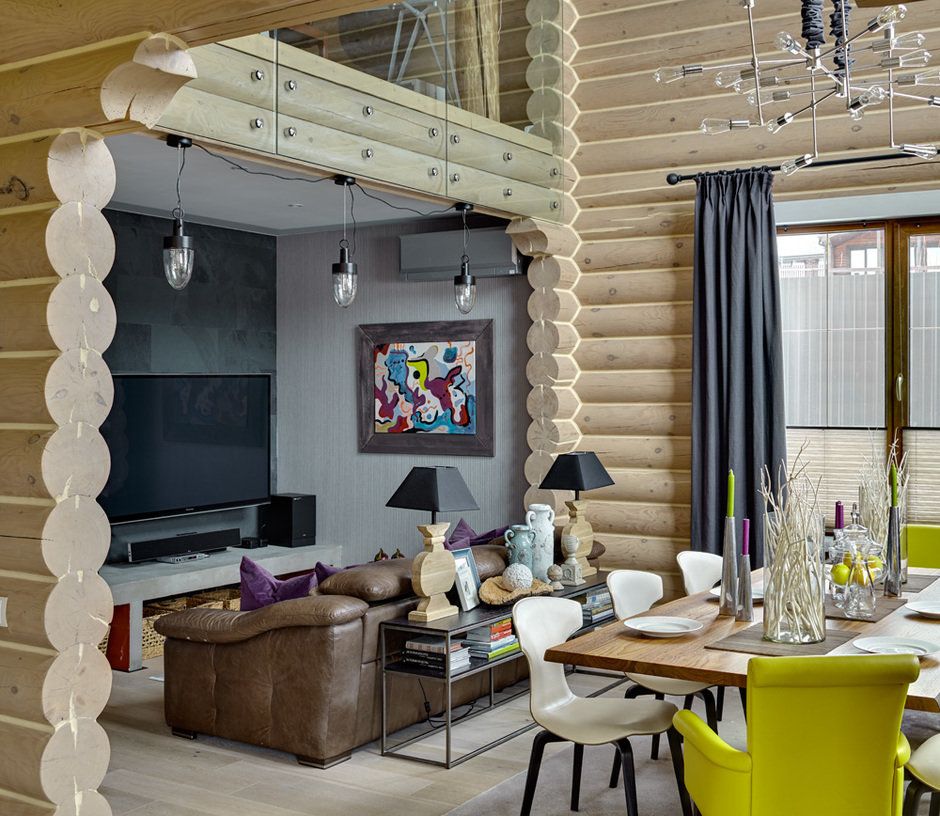 Интерьер деревянного дома из бревна не обязательно должен напоминать мрачную деревенскую избу или нарядный сказочный терем.