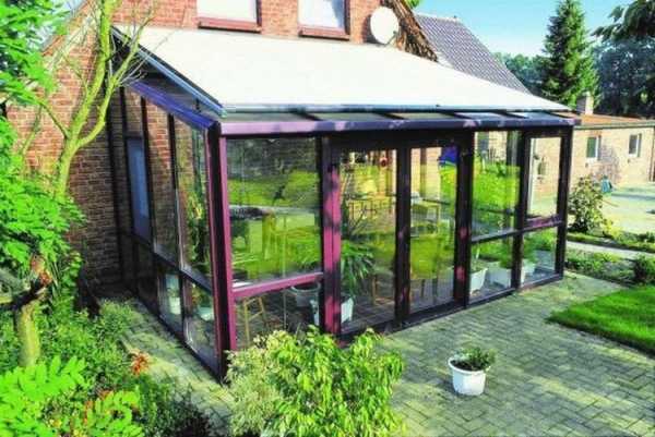 Высаженные по периметру пристройки красивоцветущие лианы будут выступать нарядным украшением пространства и защищать помещение от проникновения пыли.