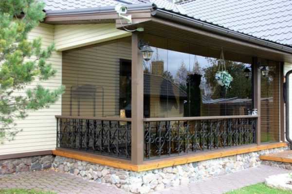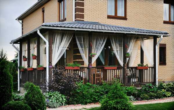 В зависимости от того, на какой стороне дома находится веранда, можно делать соответствующее оформление.