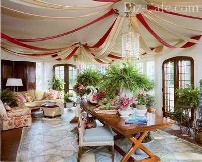 Эффектным дополнением дизайна выступят кованные стеллажи, оформленные несколькими горшками с декоративнолиственными растениями. Да и просто повсюду расставленные в горшках карликовые деревца и цветы необыкновенно украсят помещение.