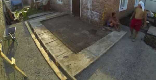 - Каркас из арматуры укладывается сверху, большее количество прутьев сконцентрированы внизу. Конструкция жестко закрепляется распорками;