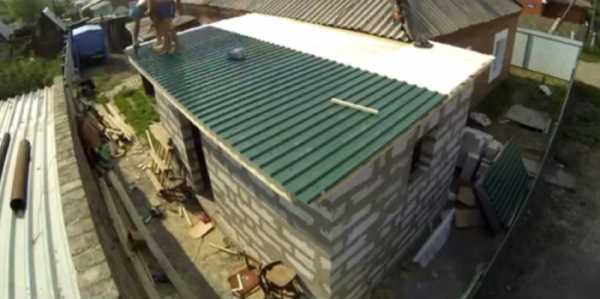 В качестве крыши наиболее популярна и привлекательна металлочерепица, но используется и шифер. Для сооружения плоской крыши для тёплой пристройке следуют инструкции: