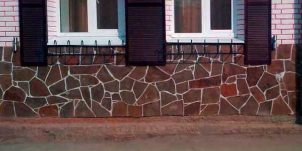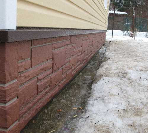 - Искусственный камень обязательно покрывают гидрофобизатором. По завершении работ устанавливают слив защищающий цоколь от дождя и снега.