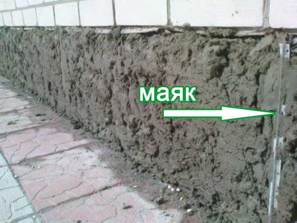 3. Установить на строительный раствор металлопрофильные маяки с шагом не более 5 метров. Расстояние до углов – 30 см.