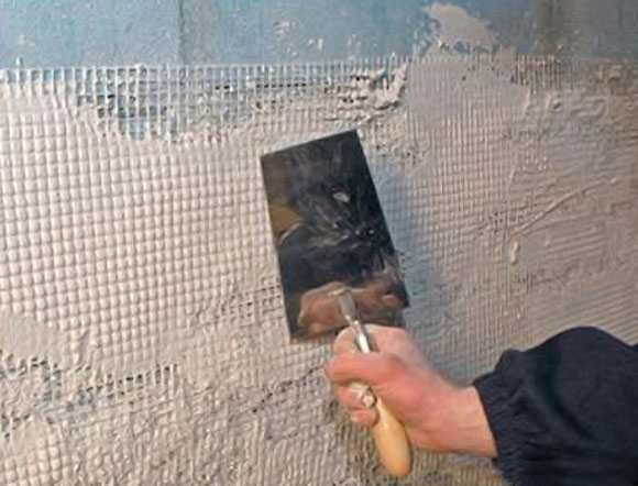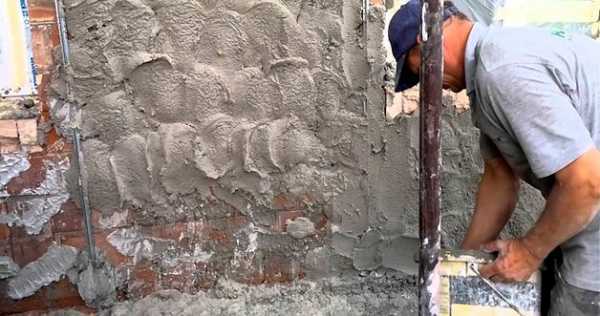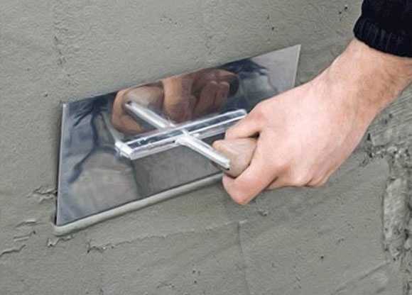 Штукатурка набрасывается на поверхность, после чего выравнивается.