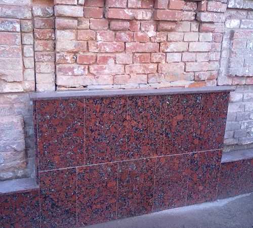 Для такой надёжной защиты фундаментного основания чаще всего используют такие дорогостоящие камни, как мрамор и гранит. Монтаж каменных плит осуществляется посредством специализированного клеевого состава. В тех случаях, когда имеет место отделка тяжёлыми камнями, то следует в обязательном порядке использовать дополнительные крепежи. Из них создаётся удобный каркас, позволяющий с лёгкостью облицевать фундамент камнем. Если отказаться от дополнительных крепёжных элементов, то с течением времени некоторые тяжёлые камни открепятся из-за своей же массы.