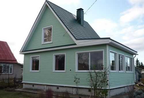 - практичный отделочный материал. Как видно на фото цвет обшивки не выгорает и не теряет своей яркости под воздействием прямых солнечных лучей, а сам материал не растрескивается, не плавиться, не шелушиться;