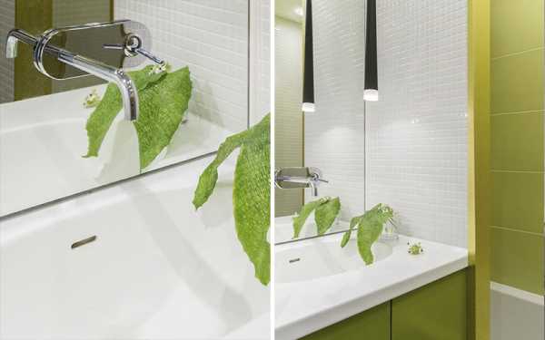 Использование нестандартной вытянутой плитки визуально расширяет пространство ванной комнаты.