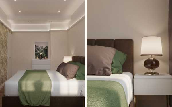 Отличный вариант интерьера небольшой спальни. Шкаф-купе хоть и не глубокий, но зато выстроен под самый потолок, а значит, туда может поместиться много полезных и нужных вещей.