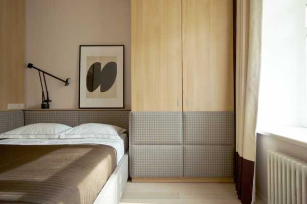 В этом проекте мы отказались от больших шкафов в спальне. Получилось мило и просторно.